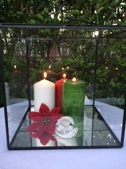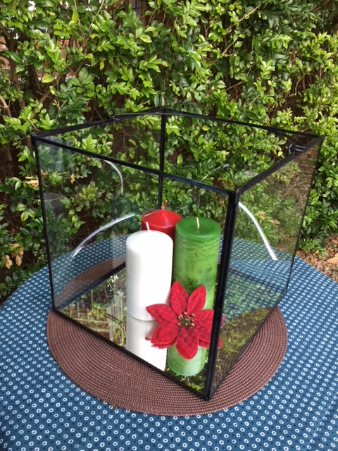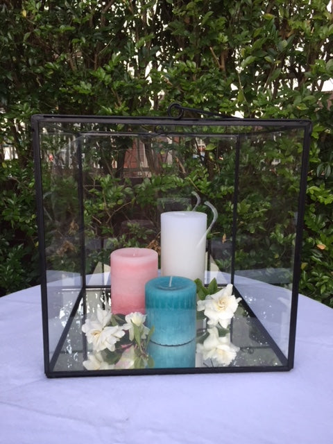 The Antique Glass Display Box is a beautiful way to display candles or some of your favourite treasures. The glass is bevelled and then soldered at the edges with one side being hinged.