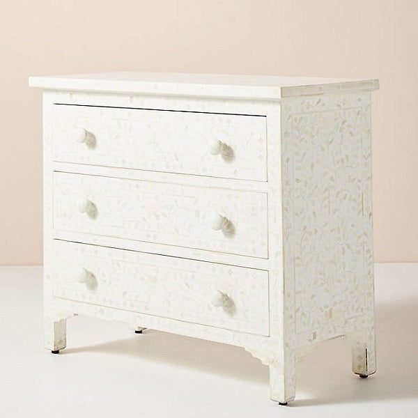 Luxurious and angelic, let this Bone Inlay Chest of Drawers set an everlasting chic ambiance in your home. This beautiful chest is an investment piece to be loved for years to come.