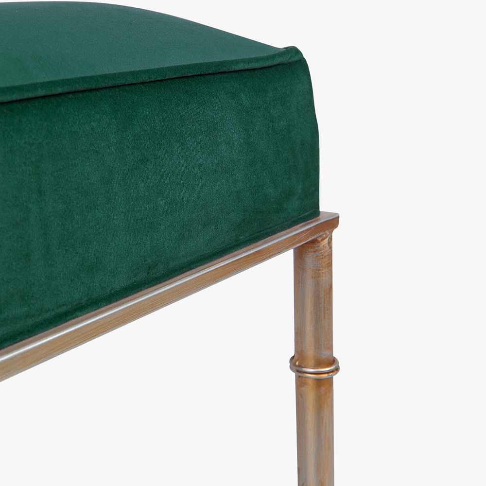 Adding instant luxe with its soft velvet upholstery in a decadent shade of emerald green and blue velvet, the versatile Clara bench ottoman features stunning tapered bamboo-inspired iron legs in an elegant antique gold finish. Perfectly placed as a bed end, entry, dining bench, or additional living room seating, the firm cushioned top with tailored self-piping edge offers comfort and timeless style. A striking piece, the Clara ottoman suits a variety of interior themes adding a perfect pop of luscious colour.
