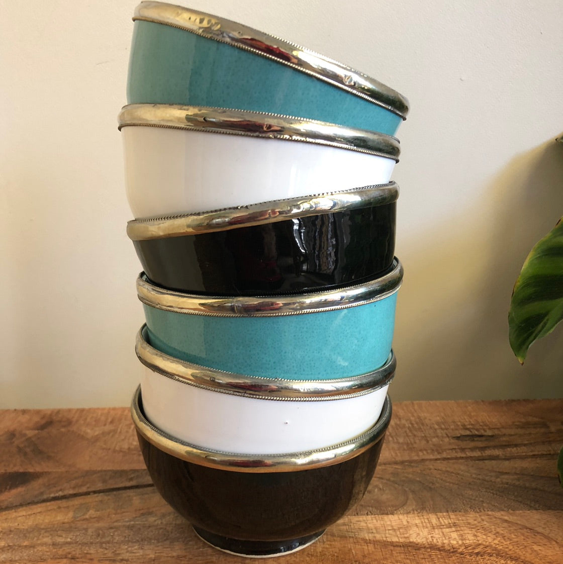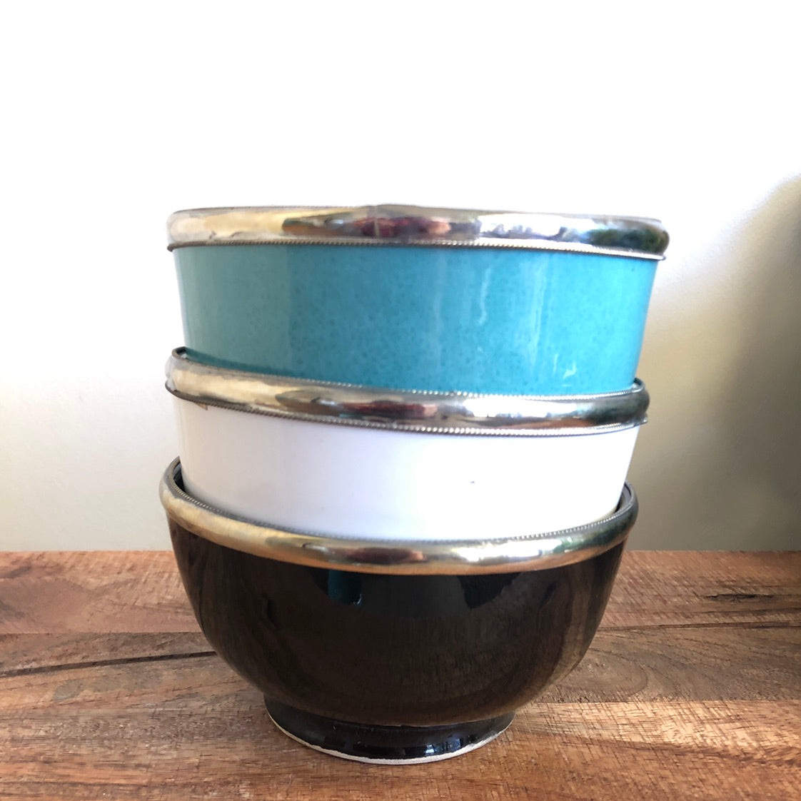 The Fez Bowl with Silver Edging is a beautiful and authentic item from Morocco. Just one Small Bowl can add a touch of colour and the exotic to any table setting or display.