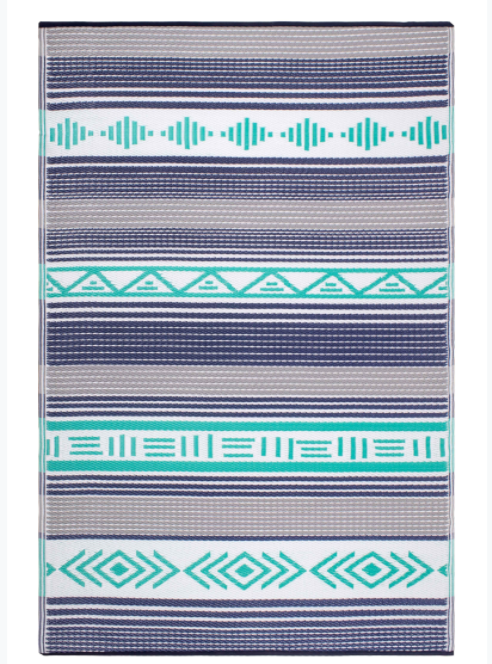 Ibiza Recycled Plastic Outdoor Rug is a Woven from straws made up of recycled plastic. Washable, just shake or hose off for easy cleaning. Suitable for indoor and outdoor uses; for outdoor use anchor with furniture or outdoor Velcro. Made in India.