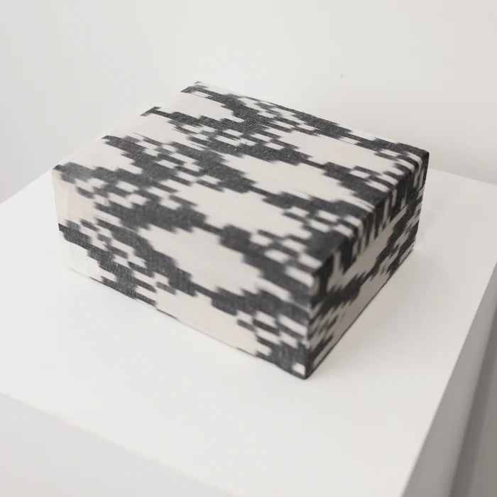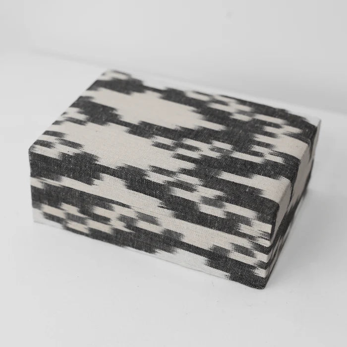 Ikat Fabric Tan Black Arrow is woven fabric. This gorgeous cotton Ikat is lightweight and airy with a delicate woven pattern of arrow on a grey base.