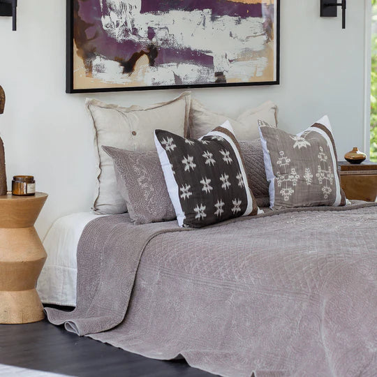 Designed and sewn in Australia, the Kilim Raffia cushions are available in only limited quantities. Cut from a small run of fabric sourced directly from the artisans, the 100% organic cotton pattern has been hand-woven and hand-dyed by a collective of Indonesian women weavers whose craft has been passed down for many generations.