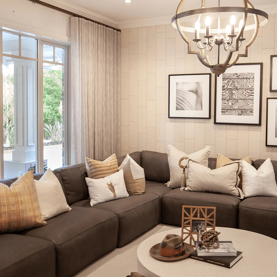 These cushions are your perfect understated lounge cushion. 100% linen base with a metallic stitch. Featuring coconut button enclosures on the reverse side with a spare in the seam. The stitch detail gives a unique twist to your regular linen lounge - hinting a boho, country and tribal aesthetic.