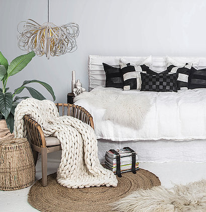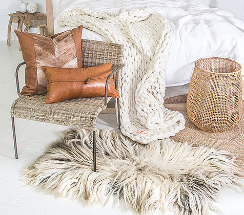 The 100% Wool, Organic Hand Made Plaids - Cream is a luxurious and bold statement throw that oozes class. Made from 100% pure shaving wool and ethically sourced by hand from small farms, this gorgeous throw will be a treasure for years to come. Available in six natural colours, no dyes are used. Knitted by hand with unspun wool which has a diameter of about three centimeters. Just stunning! And so soft and fluffy as well.