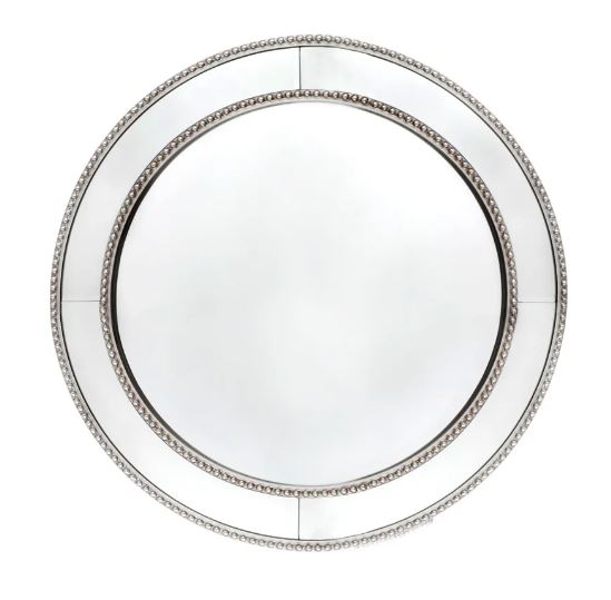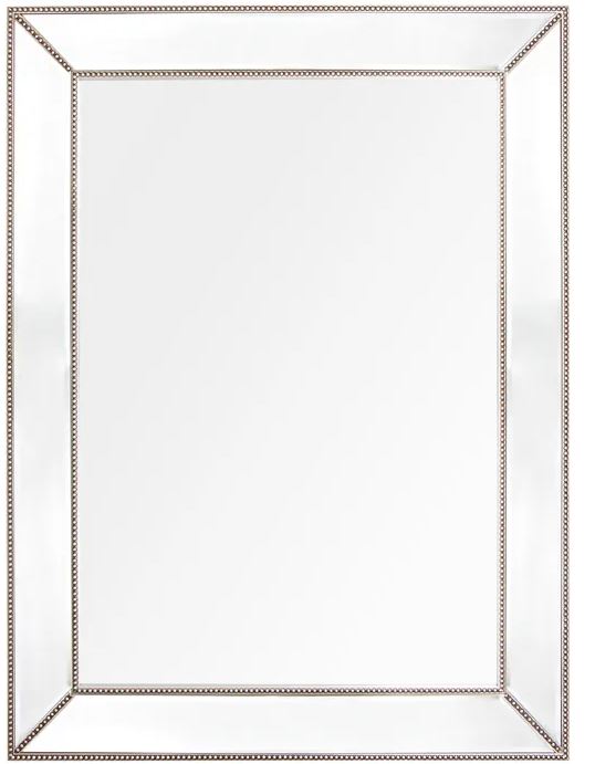 This elegant and refined wall mirror, has a stunning frame with beaded trim detail, bevelled mirror strips and a 4mm bevelled mirror.