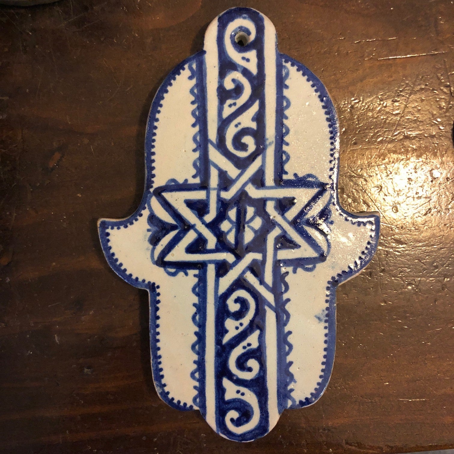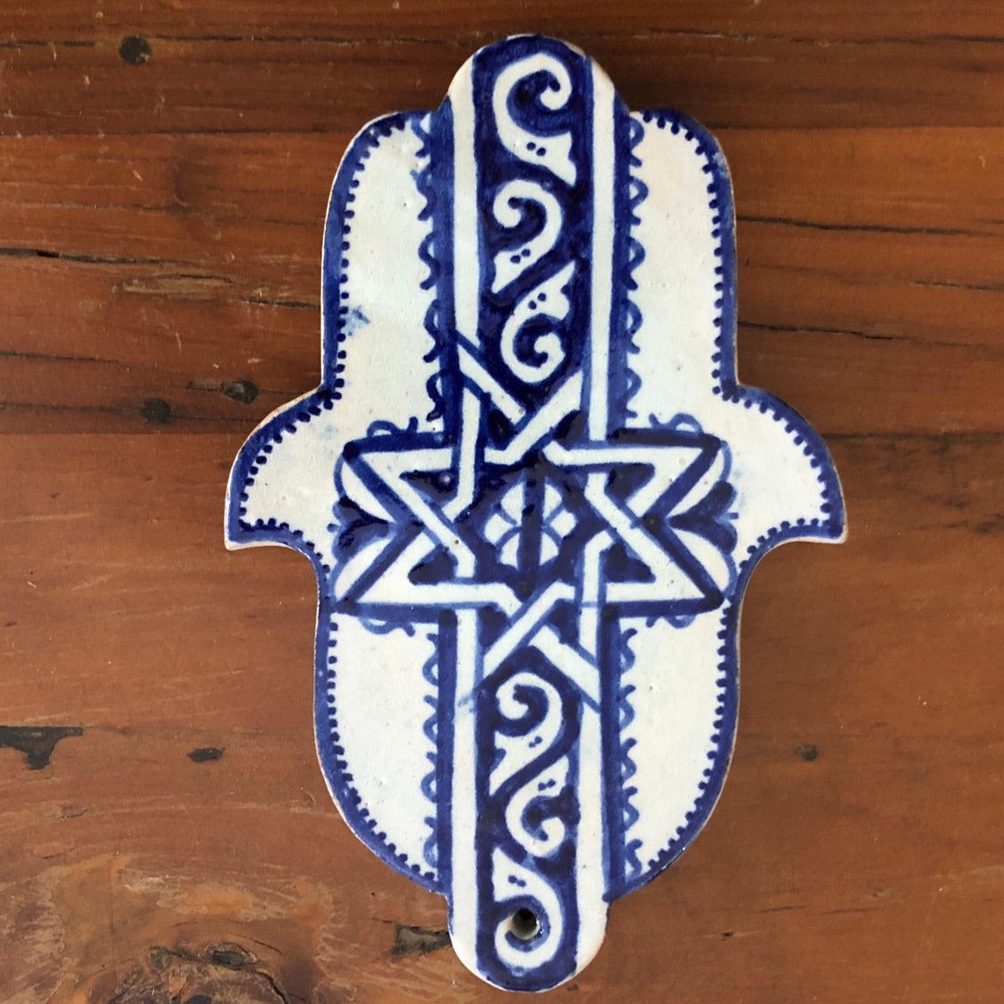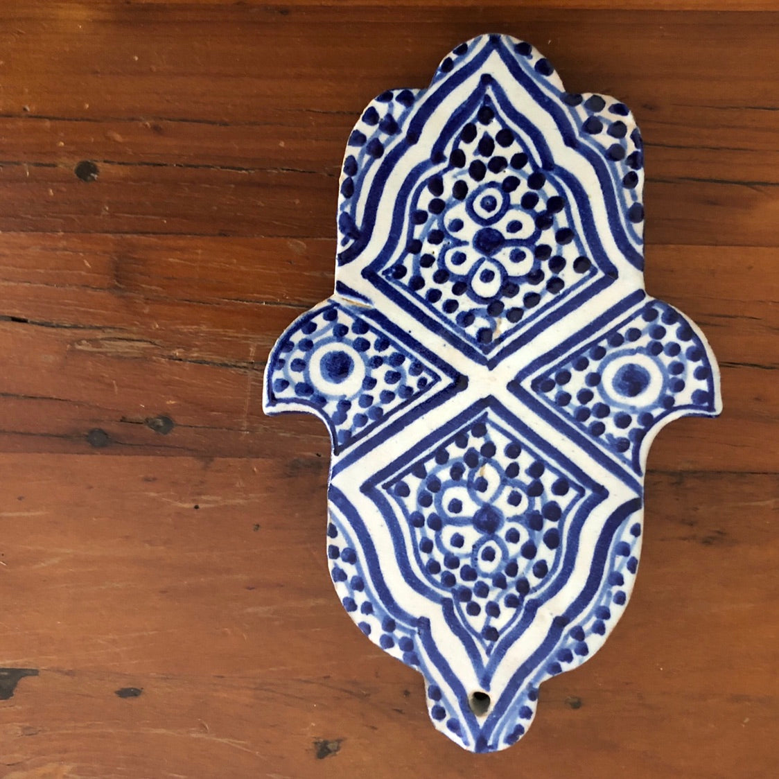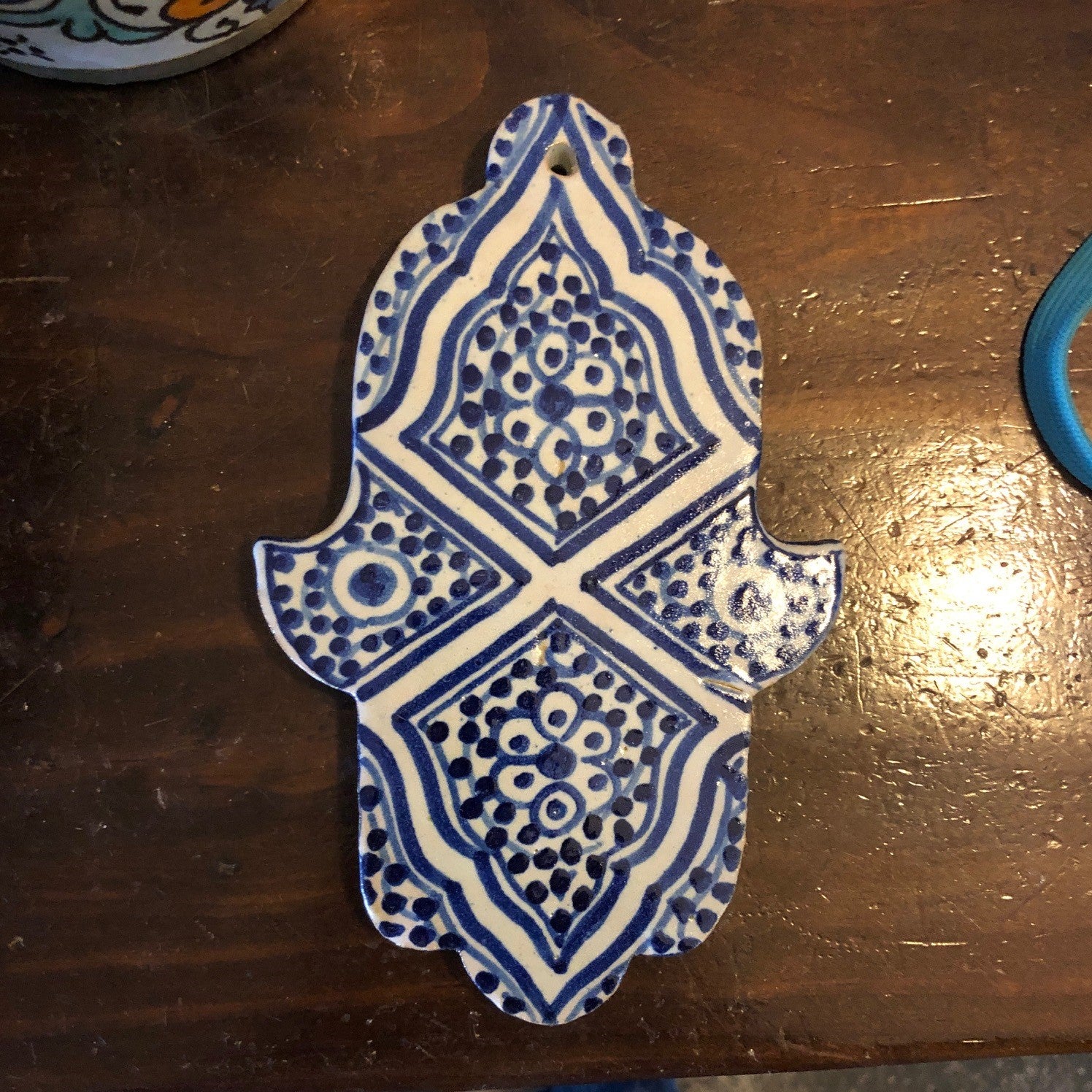 This range of pottery has been handmade in Fez, one of the oldest cities in Morocco and known as a center for pottery since the 13th century. Each Hamsa Wall Plaque is slightly different with its own imperfections but that's exactly part of the appeal! Reach out for details or to request more options.