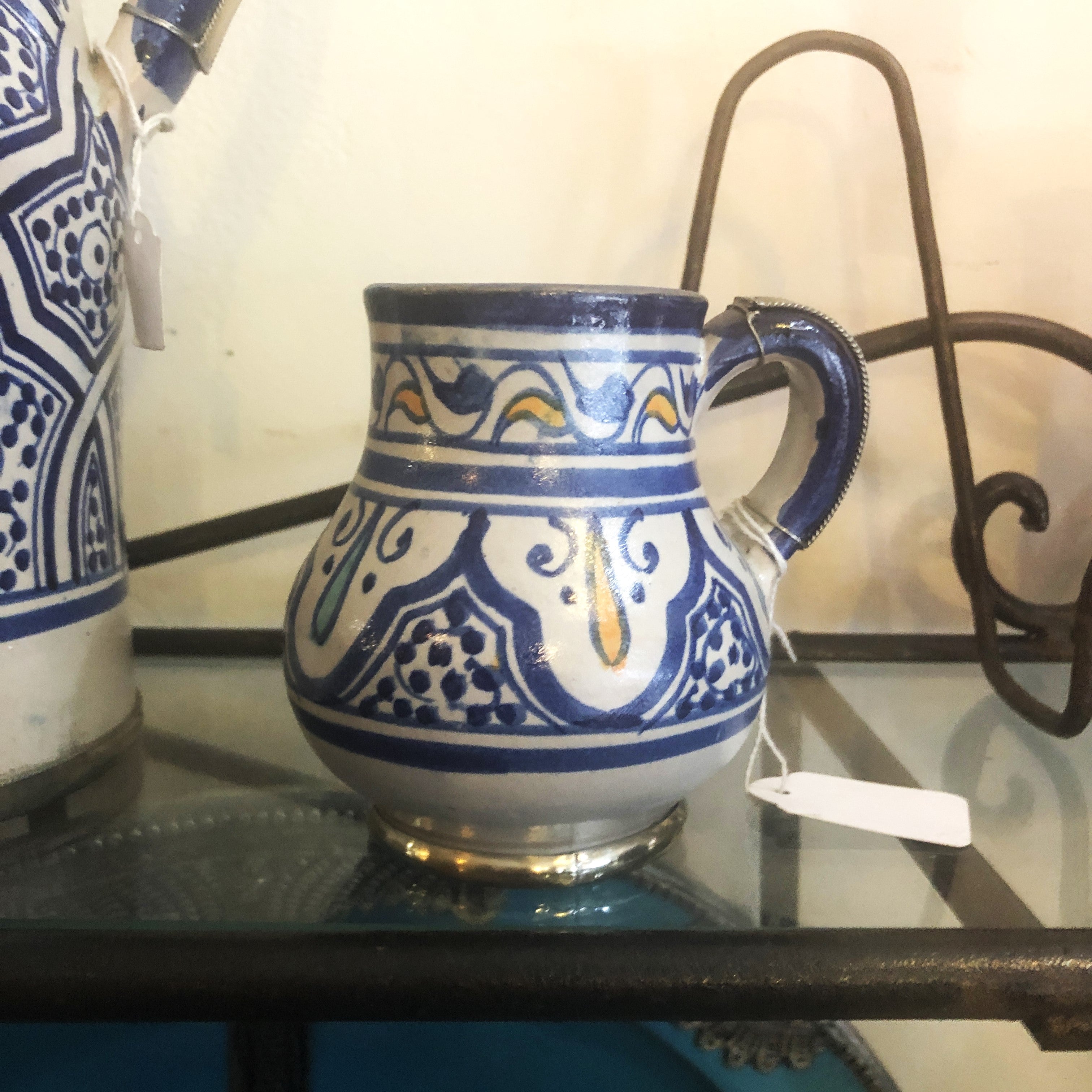 The Moorish Fez Jug is a beautiful and authentic item from Morocco. Just one Small Bowl can add flavour and intrigue to your Boho Chic or Moroccan decor or a set can be a luxurious grouping of artisan items. The Moorish Fez Small Bowl is made in a traditional pattern dating back to the middle ages. It's rich combination of gorgeous blue with a touch of gold. Mix and match these beautiful pieces for a contemporary spin on an ancient art.