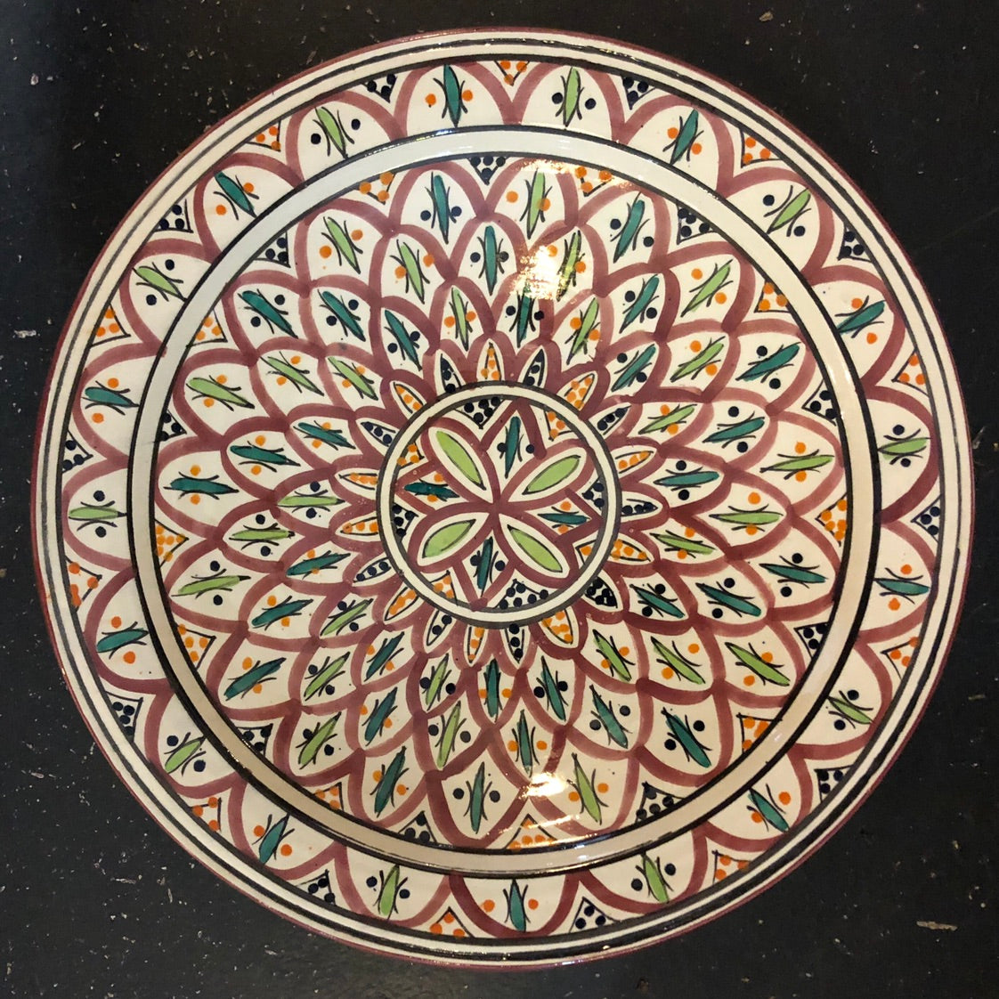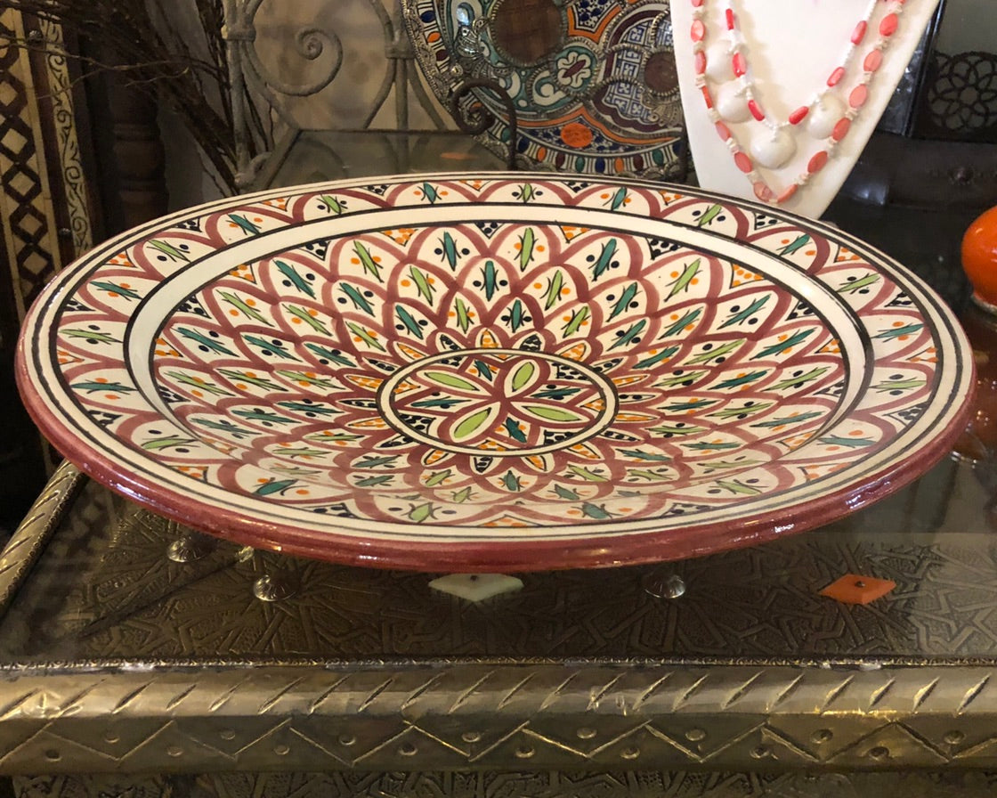 The Moorish Fez Salad Platter is a beautiful and authentic item from Morocco. Just one Small Bowl can add flavour and intrigue to your Boho Chic or Moroccan decor or a set can be a luxurious grouping of artisan items. The Moorish Fez Platter is made in a traditional pattern dating back to the middle ages. It's rich combination of gorgeous blues, oranges and reds are tied together with a turquoise rim. Mix and match these beautiful pieces for a contemporary spin on an ancient art.