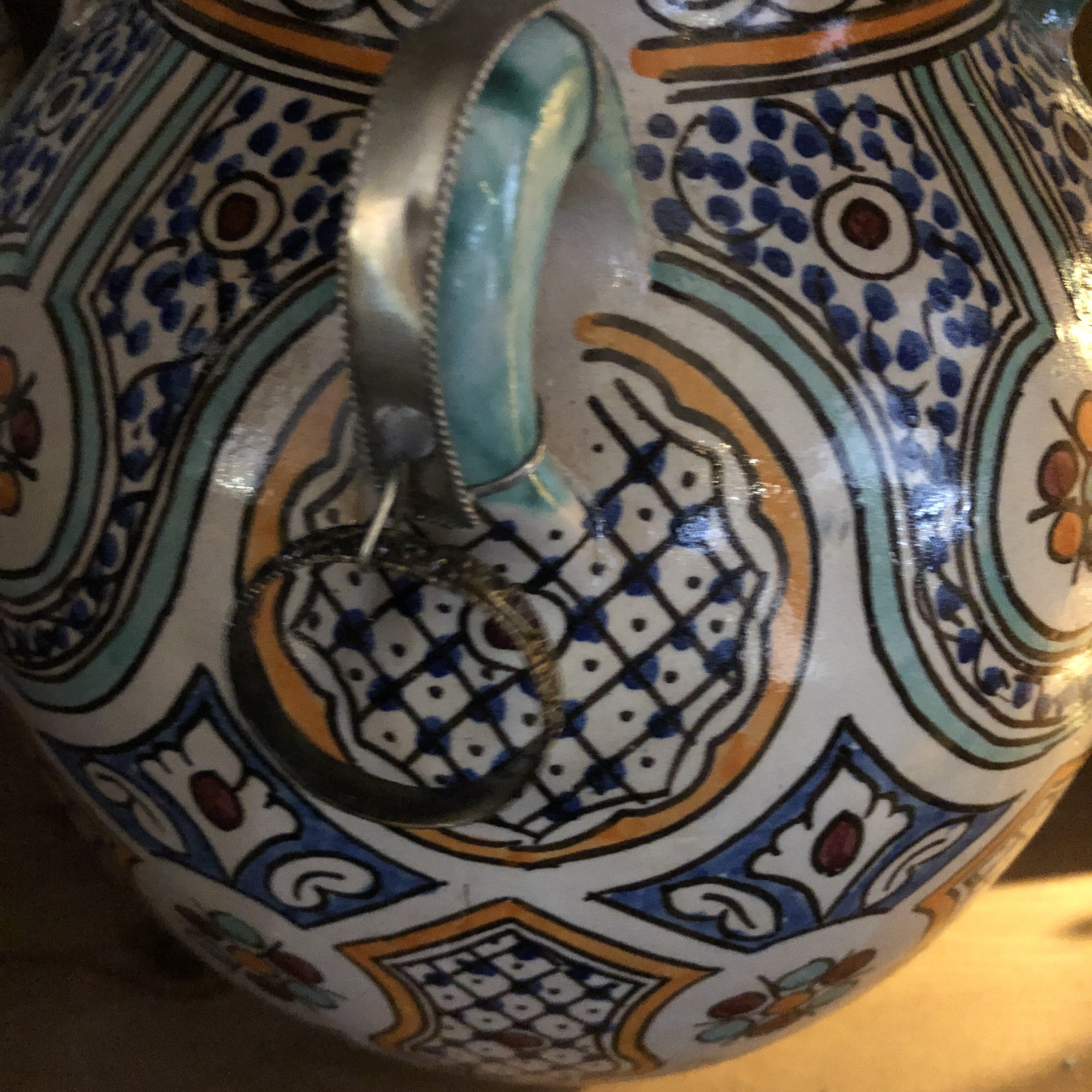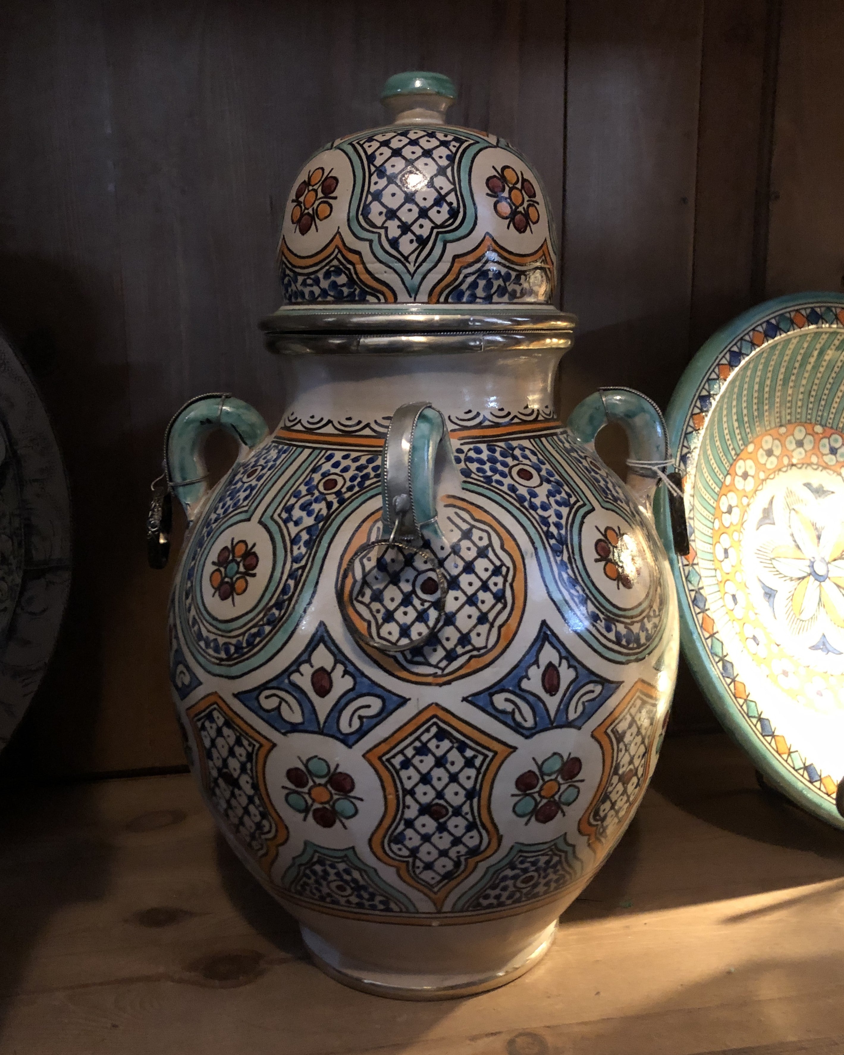 The Safi Urn with Handles is a beautiful and authentic item from Morocco. Just one piece can add a pop of colour and to your Bohemian or Moroccan decor. It is made in a traditional pattern dating back to the middle ages. It's rich combination of gorgeous hues.