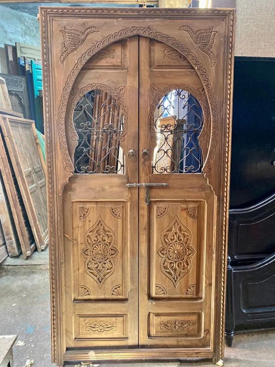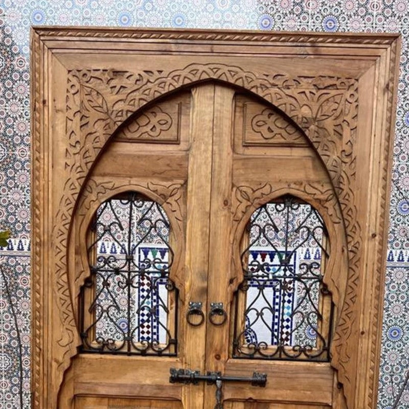 This stunning Moroccan Double Door with Ironwork Marrakech Arched Working Door and Frame could be a feature in your home. The ironwork give this door a distinctive Moroccan flair and an rustic look. You can even paint these doors for added effect as they do in Morocco. See examples of painted doors to give you an idea. These doors are truly an architectural treasure that will bring the "wow" factor in spades.