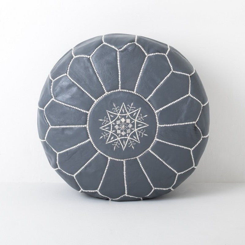 ur pouffes are hand-made by talented craftsman in Morocco, many hours is spent in the stitching and embroidery detailing of these pieces. The leather is a high-quality Moroccan goat leather, please note the leather is hand-made and painted, it is not as processed and refined as other leather products you may find, making this a natural and authentic piece for your home. Slight impfections and variations may exsting in the leather due as it is a natural and hand-made product.