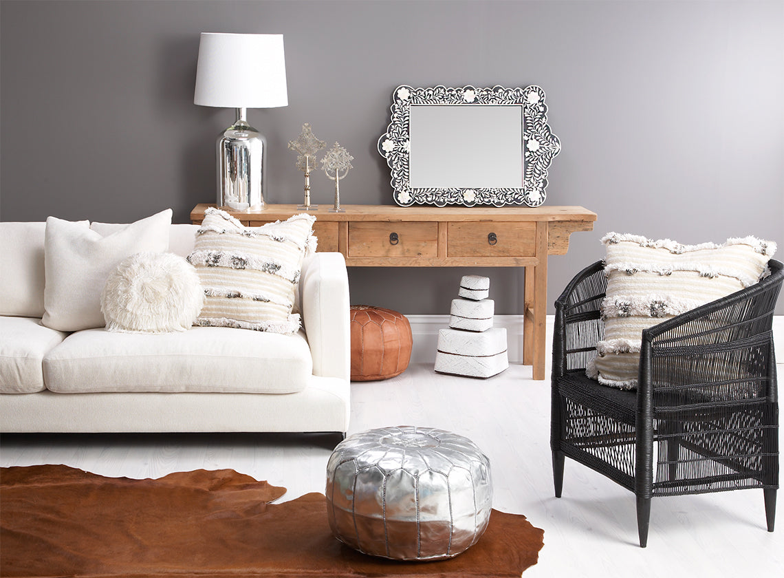 A great way to add some character to any living space or bedroom, with this beautiful silver Moroccan Pouffe. Handmade in Morocco, these authentic jewels of Morocco are beautiful, used as a decorative piece, foot stool or even side table.