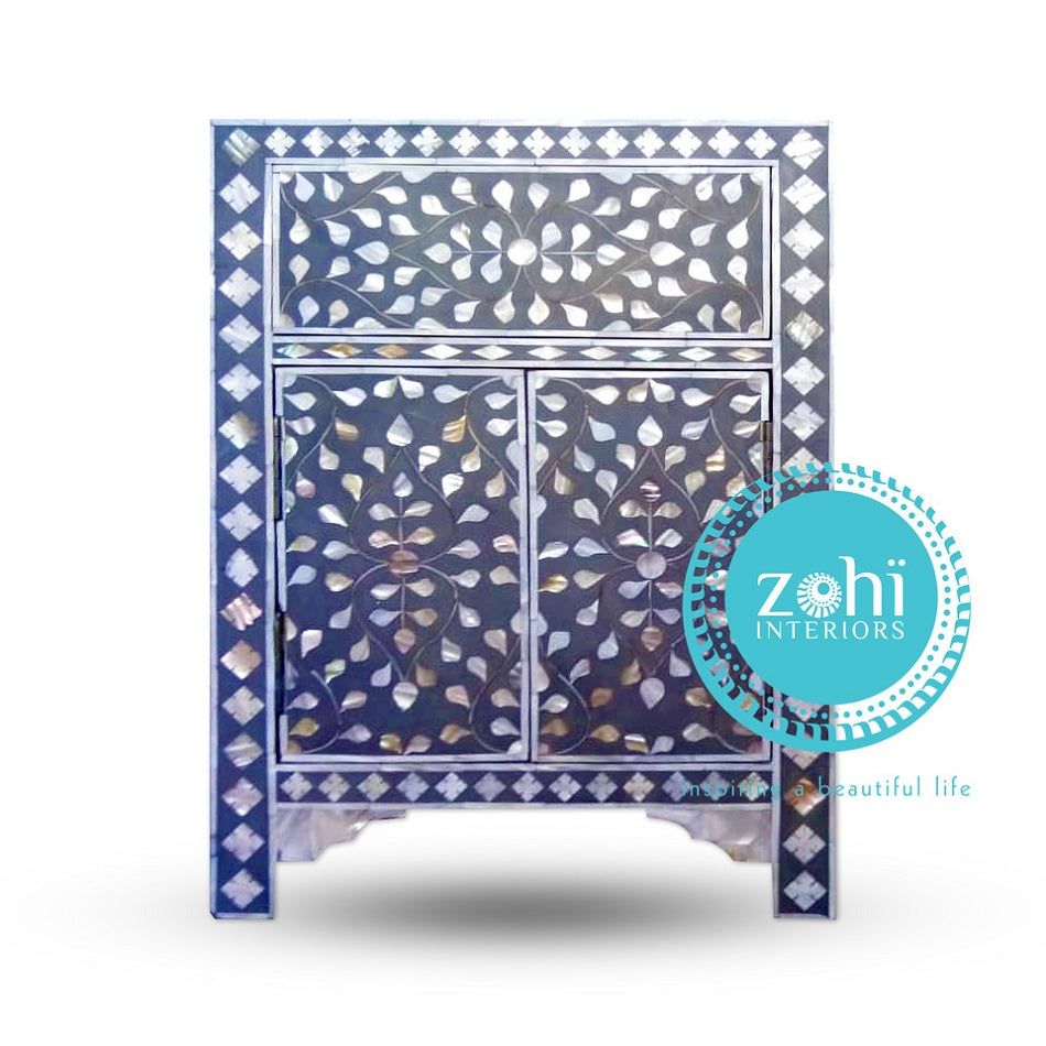 Spoil yourself with this beautiful treasure piece with its unusual speckled inlay design. This is an investment piece to be loved for years to come! The gorgeous combination of coloured resin and abalone shell tiles has everlasting appeal and will create a relaxed elegance in your home. This versatile piece has all the features you could want and it could be used in a variety of settings and rooms.