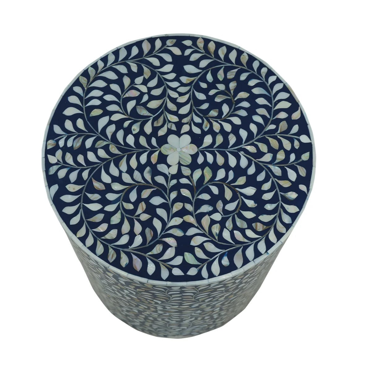The Mother of Pearl Inlay Round Side Table/Stool is made of Mother of Pearl in Blue abalone shell, resin and sustainably produced mango wood. It is a piece that would look beautiful and stylish in any room. This is a useful and elegant table that can be incorporated into any decor style.