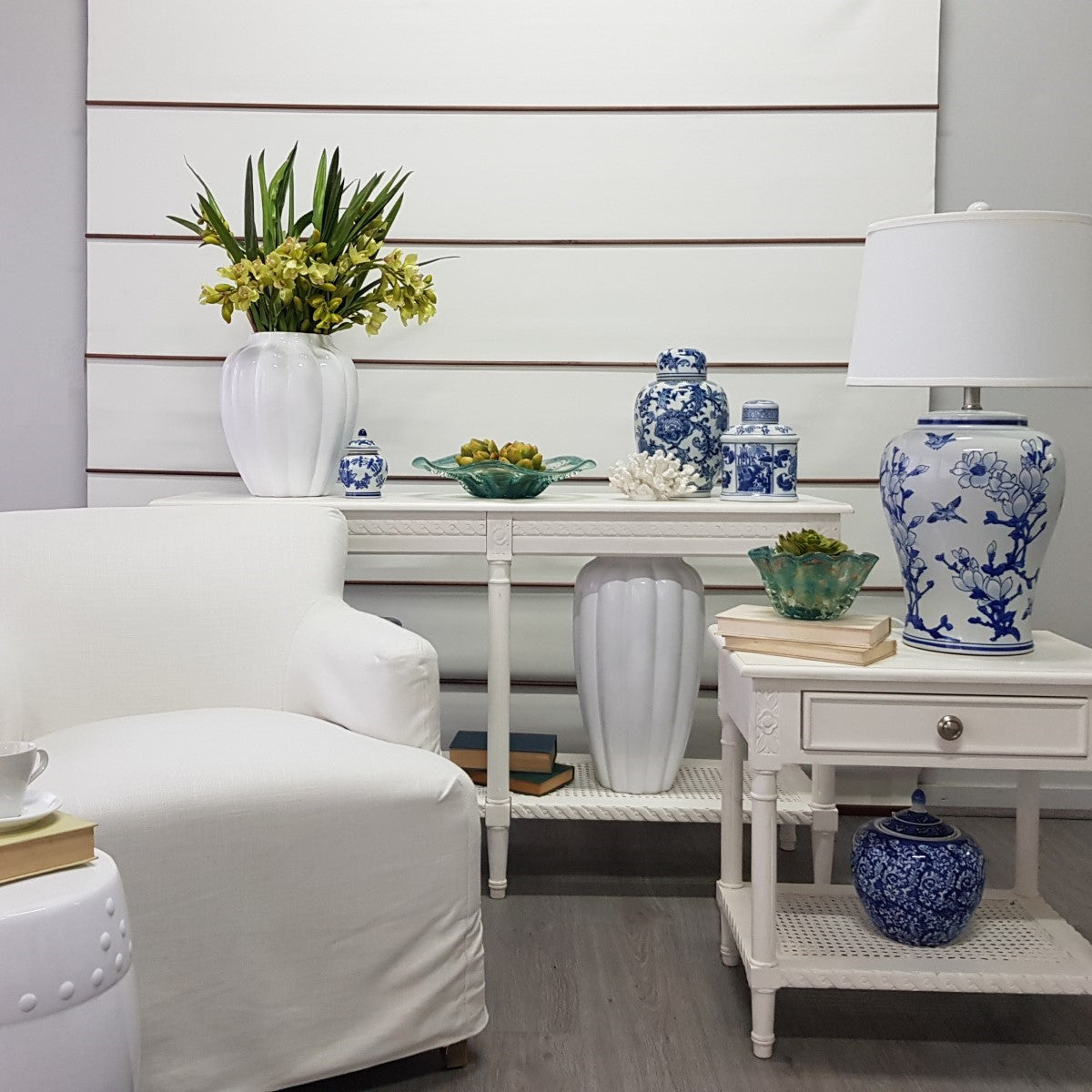 A console table in the entryway provides a strong focal point and first impression for guests entering your home. This console table is in a white painted finish and the rattan bottom shelf provides a coastal feel. This piece is part of our popular Nimes Range which includes several pieces that you can mix and match. Buy now while stocks last. You can even start with a small deposit and pay over time.