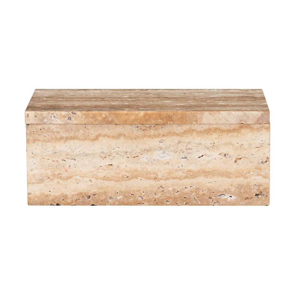 Crafted with care from striking travertine stone, the Odin storage box compliments any interior surface with its authentic, rich texture and warm tone. Embracing the elegance and unmistakable beauty of natural stone, the Odin travertine storage box offers practical storage with timeless appeal. Available in two sizes.