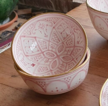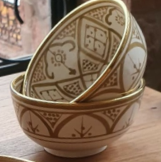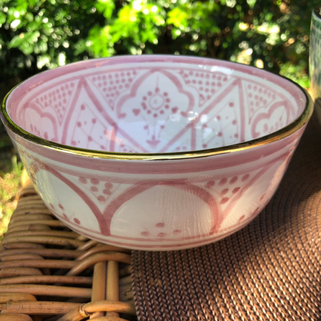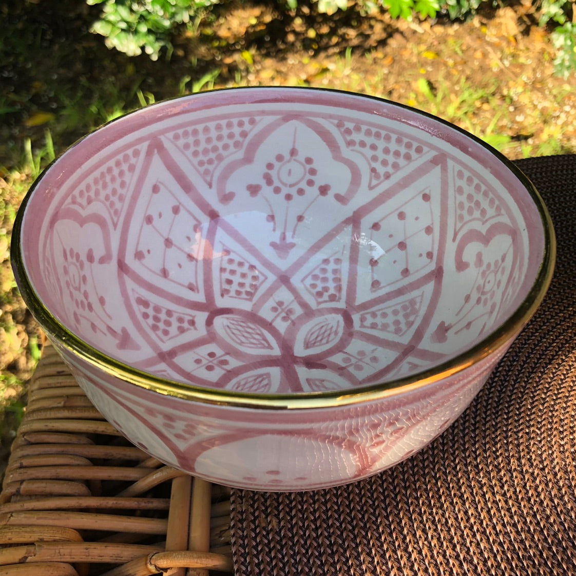 The Rabat Safi Medium Bowl is just so lovely! It's a beautiful and authentic treat from Morocco. It is made in a village in the south of Morocco in a traditional Moroccan pattern. These bowls are handmade of white Italian clay and hand painted in Safi. They are dishwasher proof.