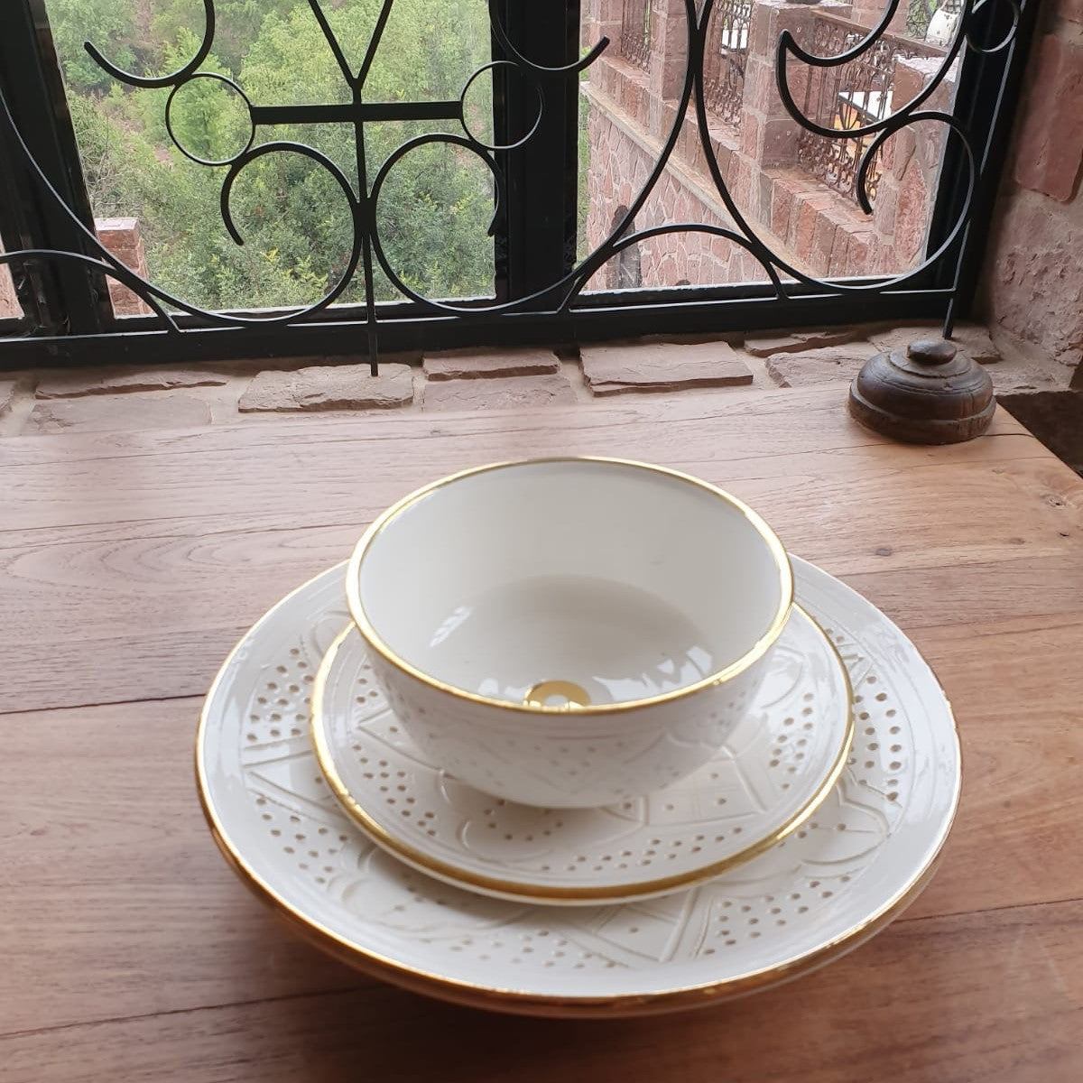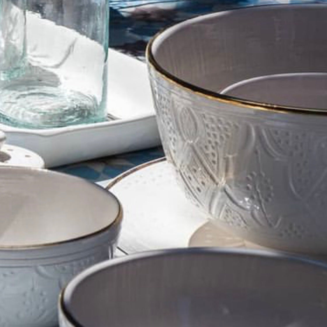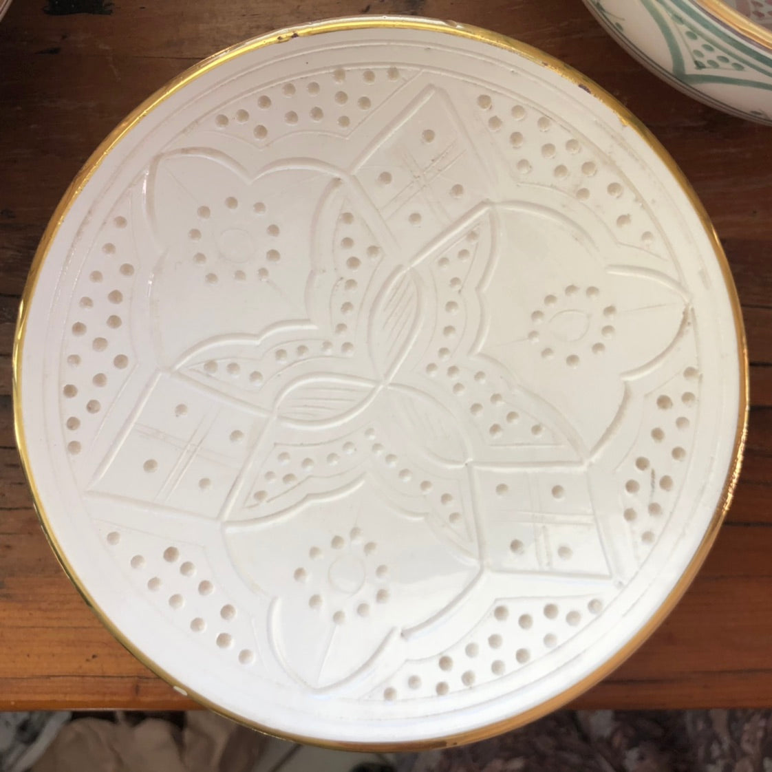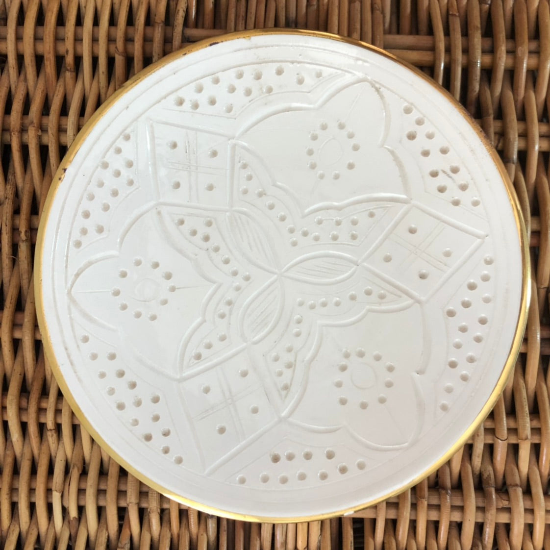 The Rabat Safi Ceramics Set - Large Plate, Small Plate & Bowl is just so lovely! It's a beautiful and authentic treat from Morocco. It is made in a village in the south of Morocco in a traditional Moroccan pattern. These bowls are handmade of white Italian clay and hand painted in Safi. They are dishwasher proof.