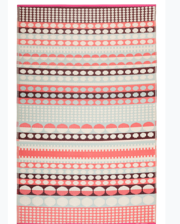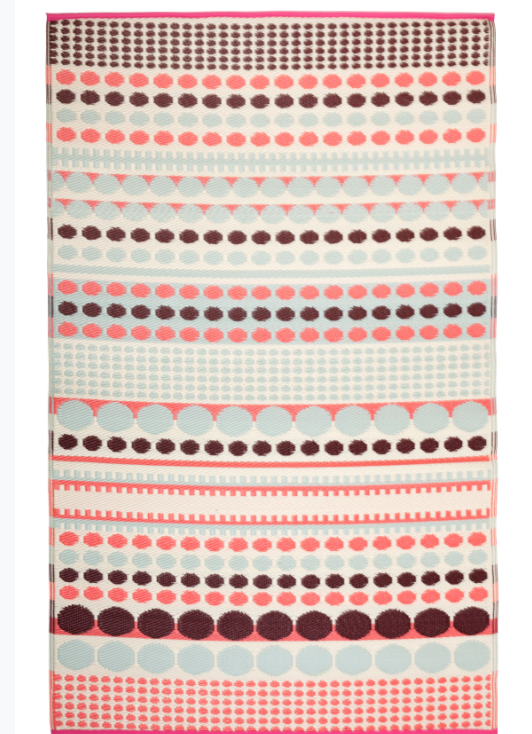 Rovaniemi Recycled Plastic Outdoor Rug Large is Woven from straws made up of recycled plastic. Suitable for indoor and outdoor uses; for outdoor use anchor with furniture or outdoor Velcro. Made in India.