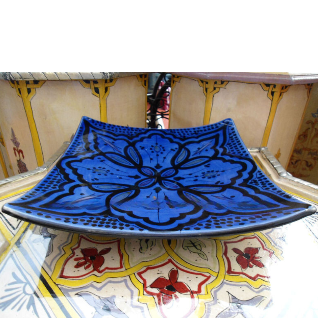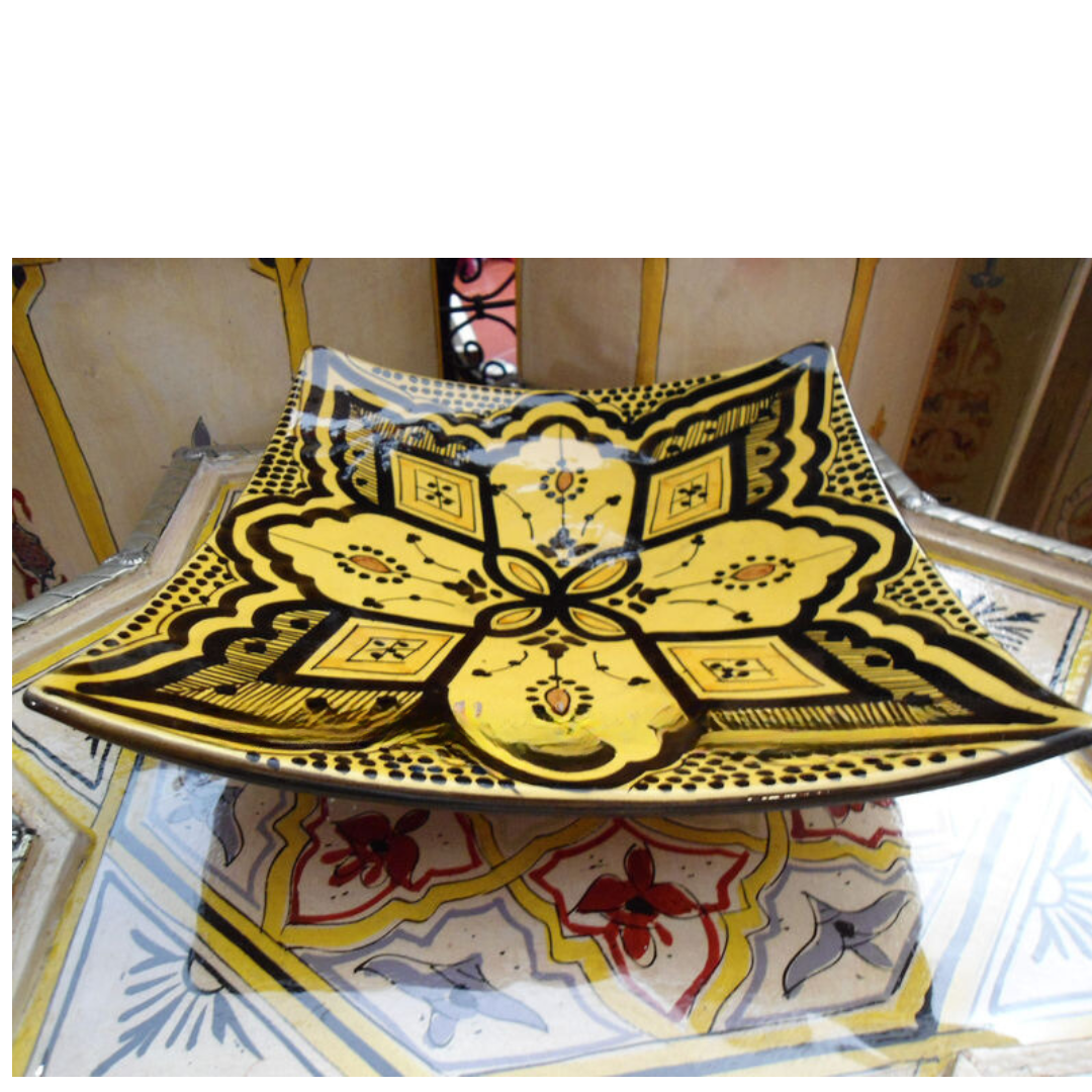 The Safi Square Plate with Upturned Corners is a beautiful and authentic item from Morocco. Just one Small Bowl or Plate can add flavour and intrigue to your Boho Chic or Moroccan decor or a set can be a luxurious grouping of artisan items.