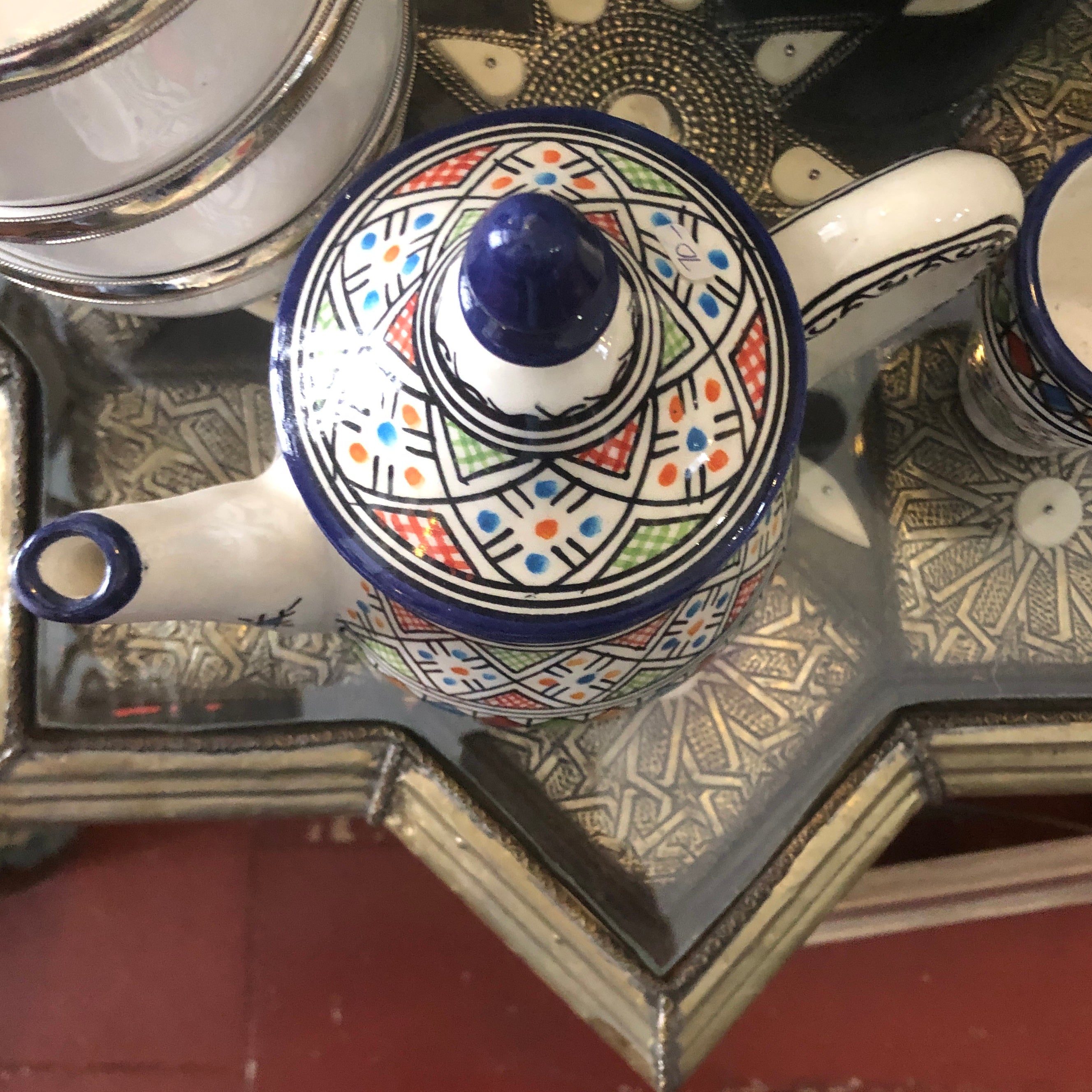 The Tangier Tea Pot with typical Moroccan design is a beautiful and authentic item. It is ideal as a decorative piece to add a touch of the exotic and romantic. It is also functional and would be a treat to serve tea from!